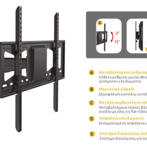 POWERTECH επιτοίχια βάση τηλεόρασης PT-1389, 37-80", έως 40kg, full motion