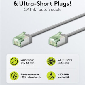 GOOBAY καλώδιο δικτύου 74344, CAT 8.1 U/FTP, ultra slim, copper, 40Gbps, 0.25m, γκρι