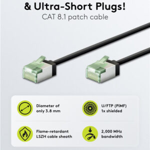 GOOBAY καλώδιο δικτύου 74354, CAT 8.1 U/FTP, ultra slim, copper, 40Gbps, 2m, μαύρο