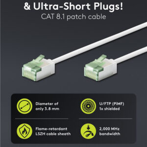 GOOBAY καλώδιο δικτύου 74358, CAT 8.1 U/FTP, ultra slim, copper, 40Gbps, 0.25m, λευκό
