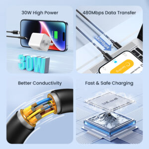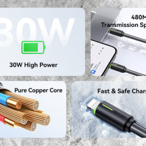 USAMS καλώδιο Lightning σε USB-C US-SJ735, 30W, 480Mbps, 1m, μαύρο