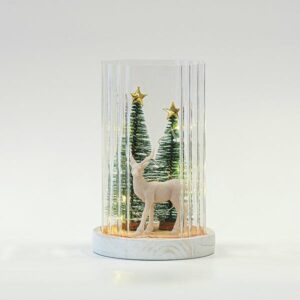 ΓΥΑΛΙΝΟ ΦΩΤΙΖΟΜΕΝΟ ΔΙΑΚΟΣΜΗΤΙΚΟ, ΜΕ ΤΑΡΑΝΔΟ ΚΑΙ ΔΕΝΤΡΑ ΣΤΟ ΕΣΩΤΕΡΙΚΟ ΤΟΥ, 11,5×11,5×18,5cm