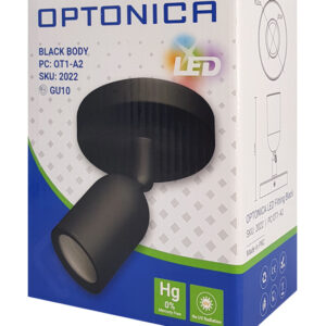 OPTONICA φωτιστικό spot 2022, για λάμπα GU10, πλαστικό, IP20, μαύρο