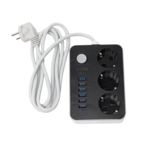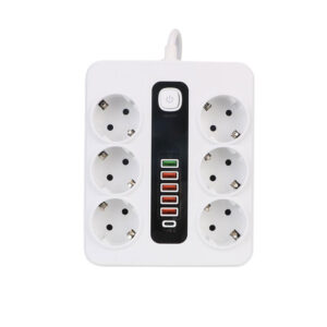 Πολύμπριζο 6 Θέσεων, 5USB και 1Type-C με διακόπτη 2m καλώδιο 3000W BKL-11EU- Power Socket