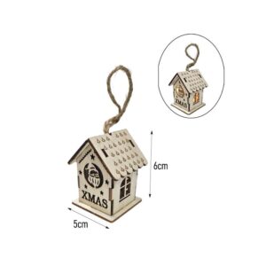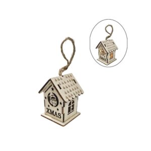 Χριστουγεννιάτικο Ξύλινο Σπιτάκι Διακοσμητικό με LED 6cm – Christmas Wooden House Ornament