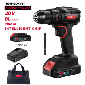 DELI κρουστικό δραπανοκατσάβιδο μπαταρίας DE-CZ20-1D2, Brushless, 20V, 2x 2Ah, 70N.m