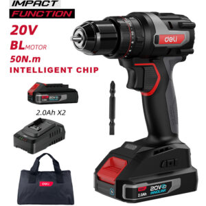 DELI κρουστικό δραπανοκατσάβιδο μπαταρίας DE-CZ20-2D2, Brushless, 20V, 2x 2Ah, 50N.m