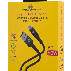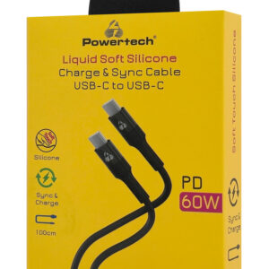 POWERTECH καλώδιο USB-C PTR-0163, σιλικόνης, 60W, 480Mbps, 1m, μαύρο