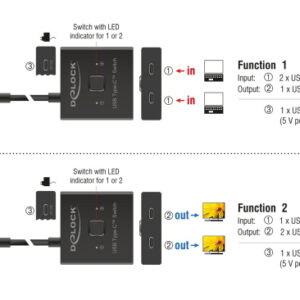 DELOCK USB-C switch 18911, 2 σε 1 bidirectional, 10Gbps, 8K, 100W, μαύρο