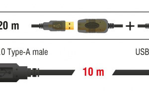 DELOCK καλώδιο USB 2.0 αρσενικό σε θηλυκό 82446, active, 10m, μαύρο