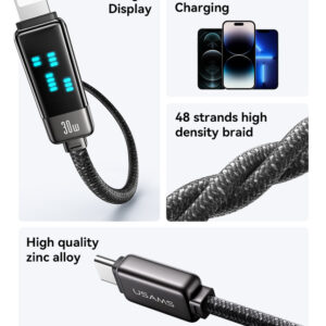 USAMS καλώδιο Lightning σε USB-C SJ749, 30W, 480Mbps, 1.2m, μαύρο