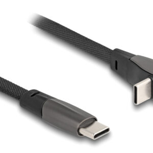 DELOCK καλώδιο USB-C 80751, 60W, flat, γωνιακό, 480 Mbps, 1m, μαύρο