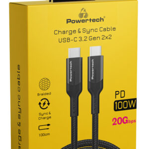 POWERTECH καλώδιο USB-C PTR-0136, PD 100W, 20Gbps, copper, 1m, μαύρο