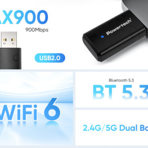 POWERTECH ασύρματος USB αντάπτορας δικτύου & Bluetooth 5.3 PT-1387, 900Mbps WiFi 6