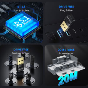 POWERTECH USB Bluetooth 5.1 αντάπτορας PT-1452 με εμβέλεια έως 20m