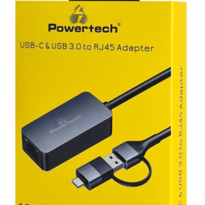 POWERTECH αντάπτορας δικτύου PTR-0149, USB & USB-C, 1000 Mbps, γκρι