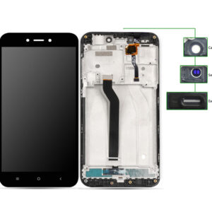 LCD για Xiaomi Redmi 5A, Camera-Sensor ring, ear mesh, με frame, Black