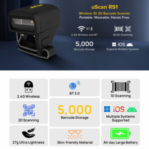 ULEFONE barcode scanner uScan RS1, ασύρματο 2.4G/Bluetooth, 1D/2D, μαύρο