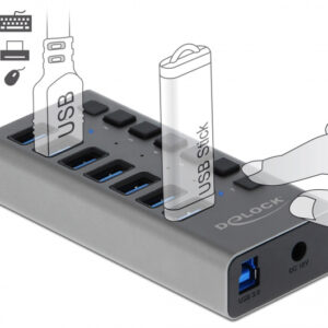 DELOCK USB hub 63264 με διακόπτες, 9x θυρών, 5Gbps, 12V/2.25A PD, γκρι