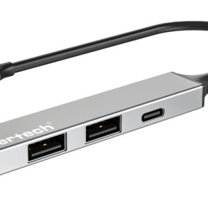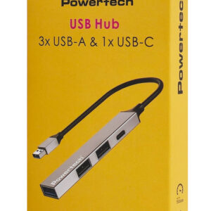 POWERTECH USB hub PT-1412, 4x θυρών, USB 3.2, 5Gbps, USB-C σύνδεση, γκρι