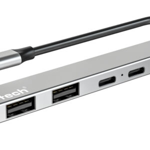 POWERTECH USB hub PTR-0151 με card reader, 8 θυρών, USB & USB-C, γκρι