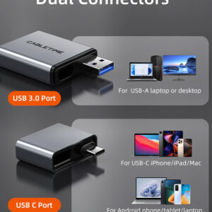 CABLETIME card reader CT-ACMCD2-ZG για SD & micro SD, USB/USB-C σύνδεση, 5Gbps, γκρι