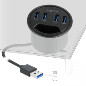 DELOCK USB hub 64153, 4x θυρών, 5Gbps, Φ60mm, USB σύνδεση, μαύρο