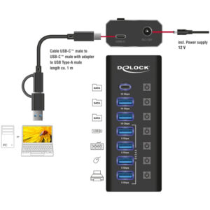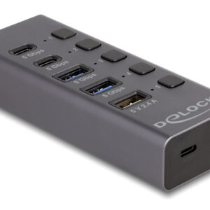DELOCK USB hub 64326 με διακόπτες, 7x θυρών, 10Gbps, USB/USB-C σύνδεση, μαύρο