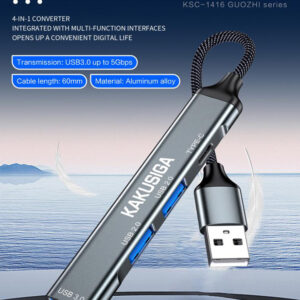 KAKUSIGA USB hub KSC-1416, 4x θυρών, USB 3.0, 5Gbps, USB σύνδεση, γκρι