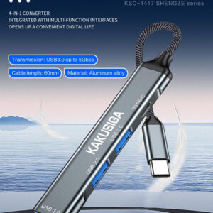 KAKUSIGA USB hub KSC-1417, 4x θυρών, USB 3.0, 5Gbps, USB-C σύνδεση, γκρι