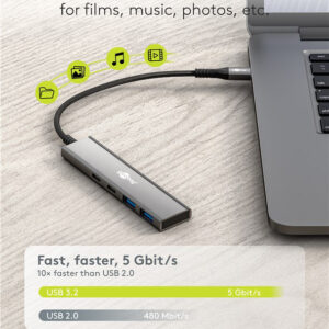 GOOBAY USB hub 76563, 4x θυρών, USB 3.2, 5Gbps, USB-C σύνδεση, γκρι