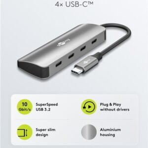 GOOBAY USB hub 76565, 4x θυρών, USB 3.2, 10Gbps, USB-C σύνδεση, γκρι