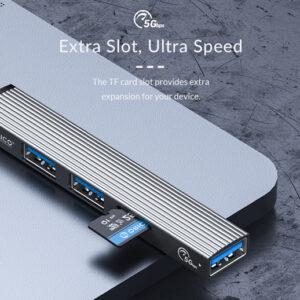 ORICO USB hub AH-12F με card reader, 3 θυρών, 5Gbps, USB-C σύνδεση, γκρι