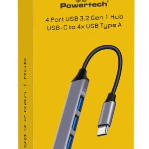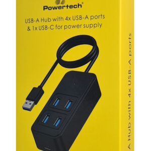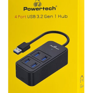 POWERTECH USB 3.2 hub PTR-0153, 4x θυρών, 5Gbps, USB σύνδεση, μαύρο