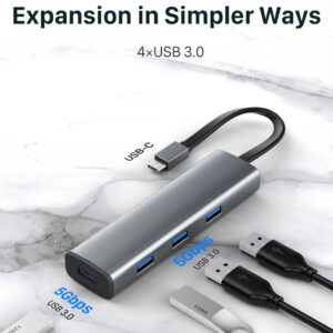 CABLETIME USB hub CT-HUBP4, 4x θυρών, 5Gbps, USB-C σύνδεση, γκρι
