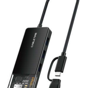 CABLETIME USB hub CT-HUBT3-PB, 4x θυρών, 5Gbps, USB/USB-C σύνδεση, μαύρο