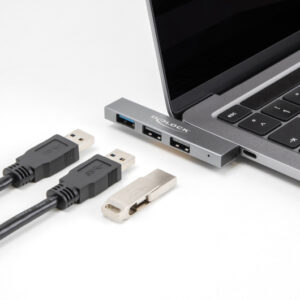 DELOCK USB hub 64214, 4x θυρών, 5Gbps, USB & USB-C σύνδεση, γκρι