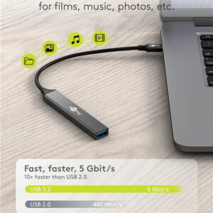 GOOBAY USB hub 74457, 4x θυρών, USB 3.2, 5Gbps, USB-C σύνδεση, γκρι