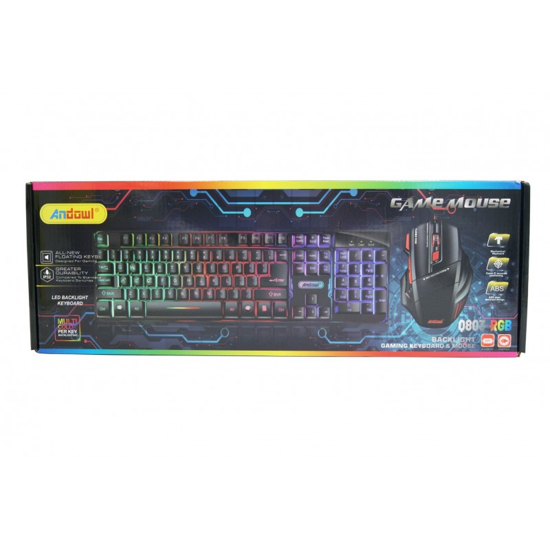 ΠΛΗΚΤΡΟΛΟΓΙΟ LED RGB+ΠΟΝΤΙΚΙ GAMING ANDOWL Q-803