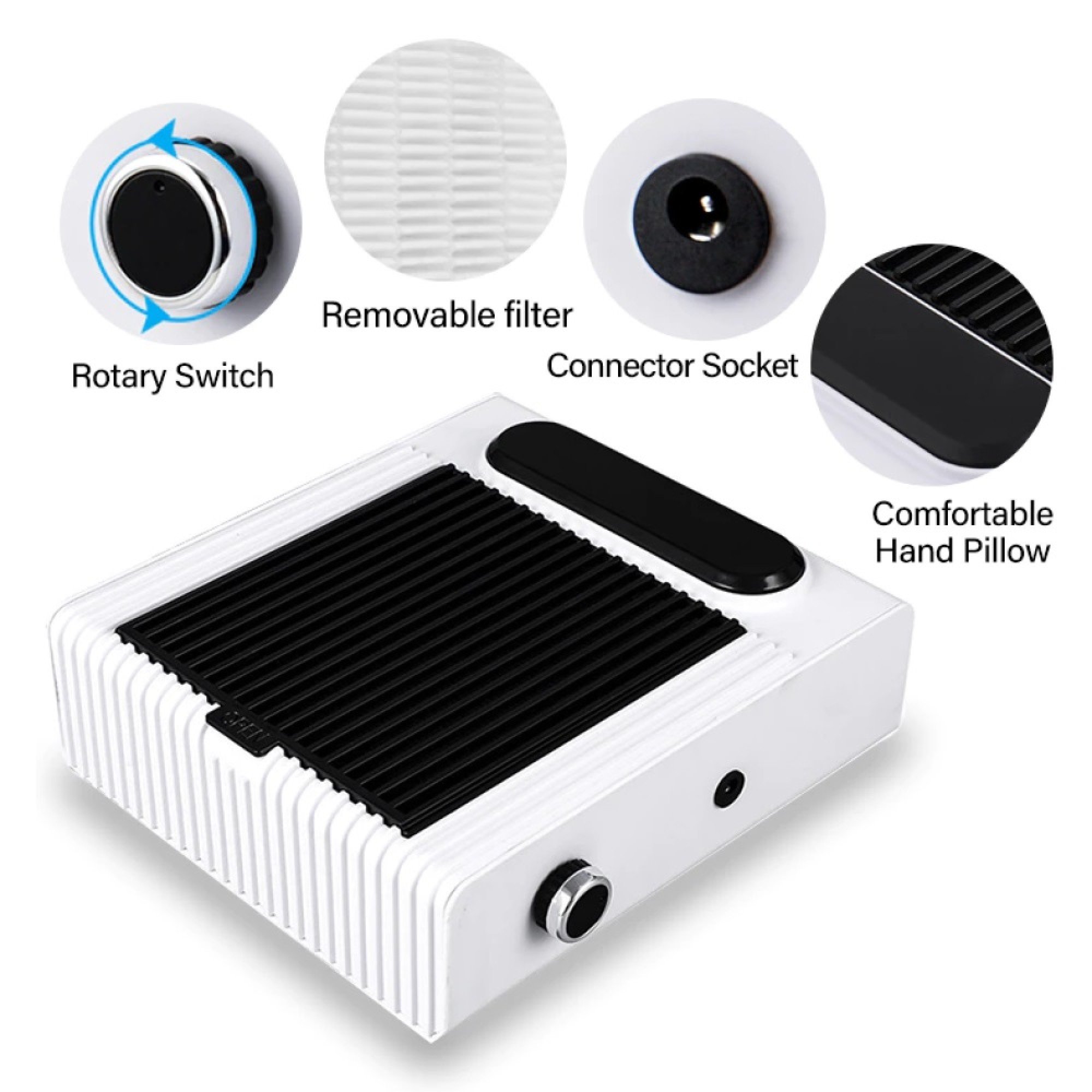 Επαγγελματικός απορροφητήρας BQ858-1 Ισχύς 80W .Απαραίτητο εργαλείο για τη συλλογή της σκόνης και την αποφυγή επικίνδυνων ασθενειών, αλλά και πιθανών αλλεργιών που προκαλούνται από την εισπνοή της.Διαθέτει ισχυρό μοτέρ για αποτελεσματική αναρρόφηση, διατηρώντας τον χώρο εργασίας καθαρό και χωρίς σκόνη.Έρχεται με επαναχρησιμοποιούμενο φίλτρο, το οποίο είναι εύκολο στον καθαρισμό.Ιδανικός για όλους τους επαγγελματίες που έρχονται σε επαφή με gel, ημιμόνιμα, ακρυλικά υλικά κλπ.Με αποσπώμενο πλενόμενο φίλτρο.Ισχυρός συλλέκτης σκόνης 80 Watt.Υλικό: ABS.Τάση: AC220 ~ 240v, 50-60Hz.Έξοδος: DC 12V.Διάσταση: 22,3cm x 9cm x 28,5 cm.