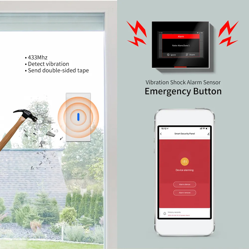 Ασύρματος ανιχνευτής θραύσης κρυστάλλων GB010 για συναγερμούς, 433MHz