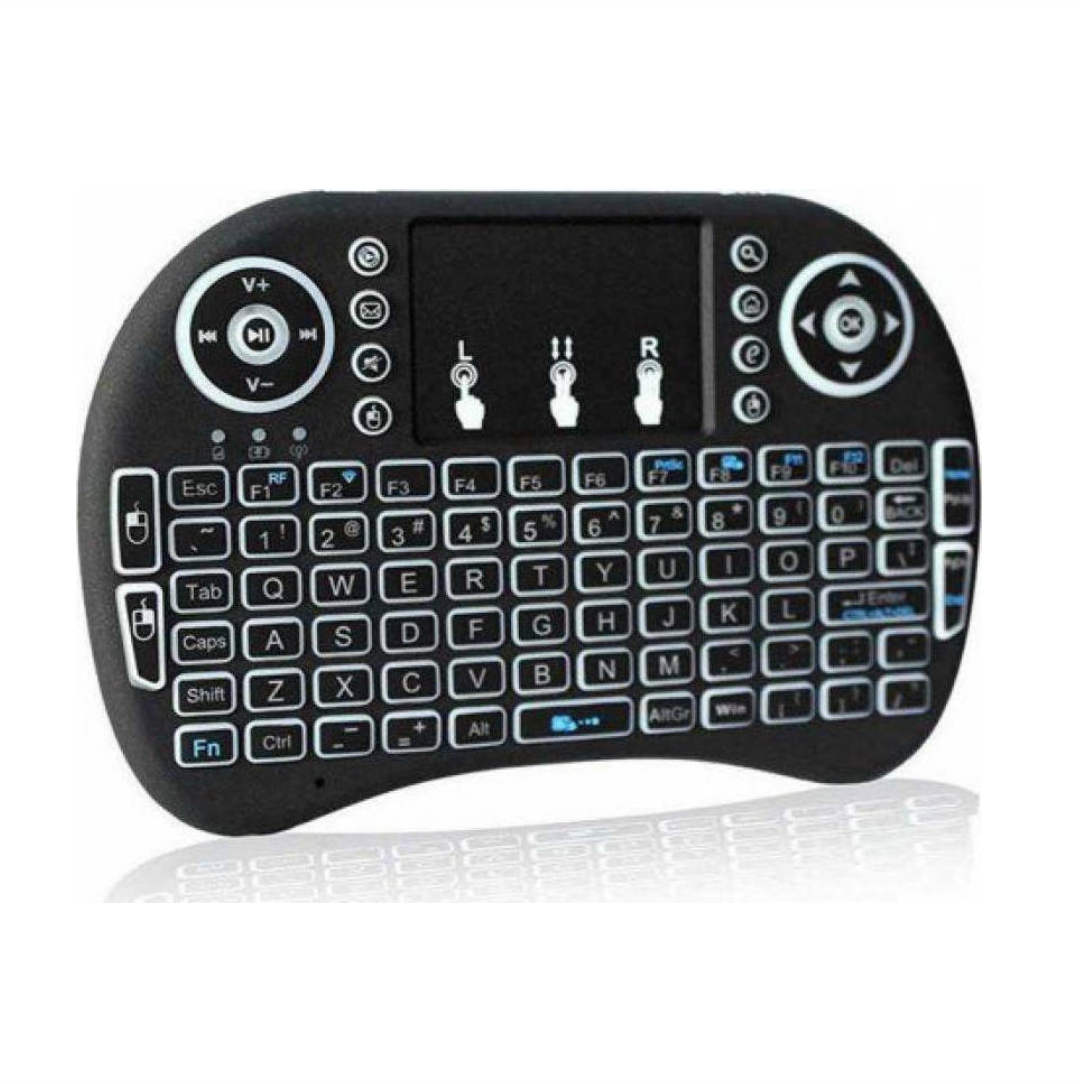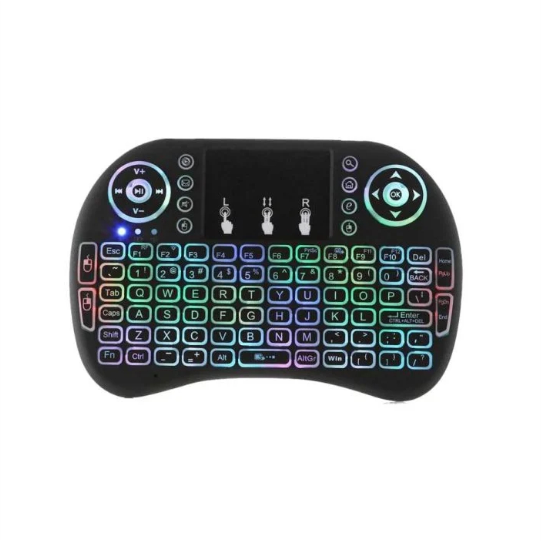 Ασύρματο πληκτρολόγιο με touchpad Q-K07 της Andowl, είναι φωτιζόμενο, μικρό και ελαφρύ. Ιδανικό για το χειρισμό TV Box, Mini PC και άλλων συσκευών από απόσταση. Επιλέξτε τα χρώματα φωτισμού που σας ταιριάζουν ή χωρίς φως πατώντας Fn + F2. Εμβέλεια 10 μέτρα. Διαστάσεις 146.8×97.5x19mm. Βάρος 110 γραμμάρια. Περιλαμβάνει καλώδιο USB σε micro usb.
