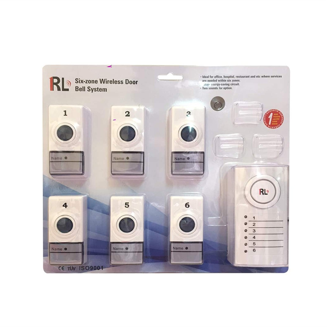Ασύρματο σύστημα κουδούνι πόρτας. Διαθέτει σύστημα 6 κουδουνιών. Έχει εμβέλεια 100 μέτρα χωρίς εμπόδια. Η εγκατάσταση γίνεται εύκολα χωρίς καλώδια και χωρίς την ανάγκη ρεύματος. Λειτουργεί με 3 μπαταρίες ΑΑ, δεν περιλαμβάνονται.