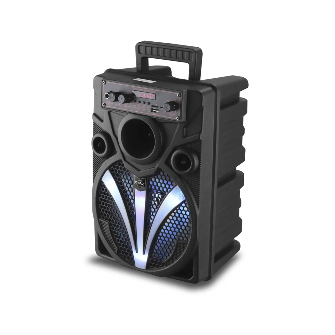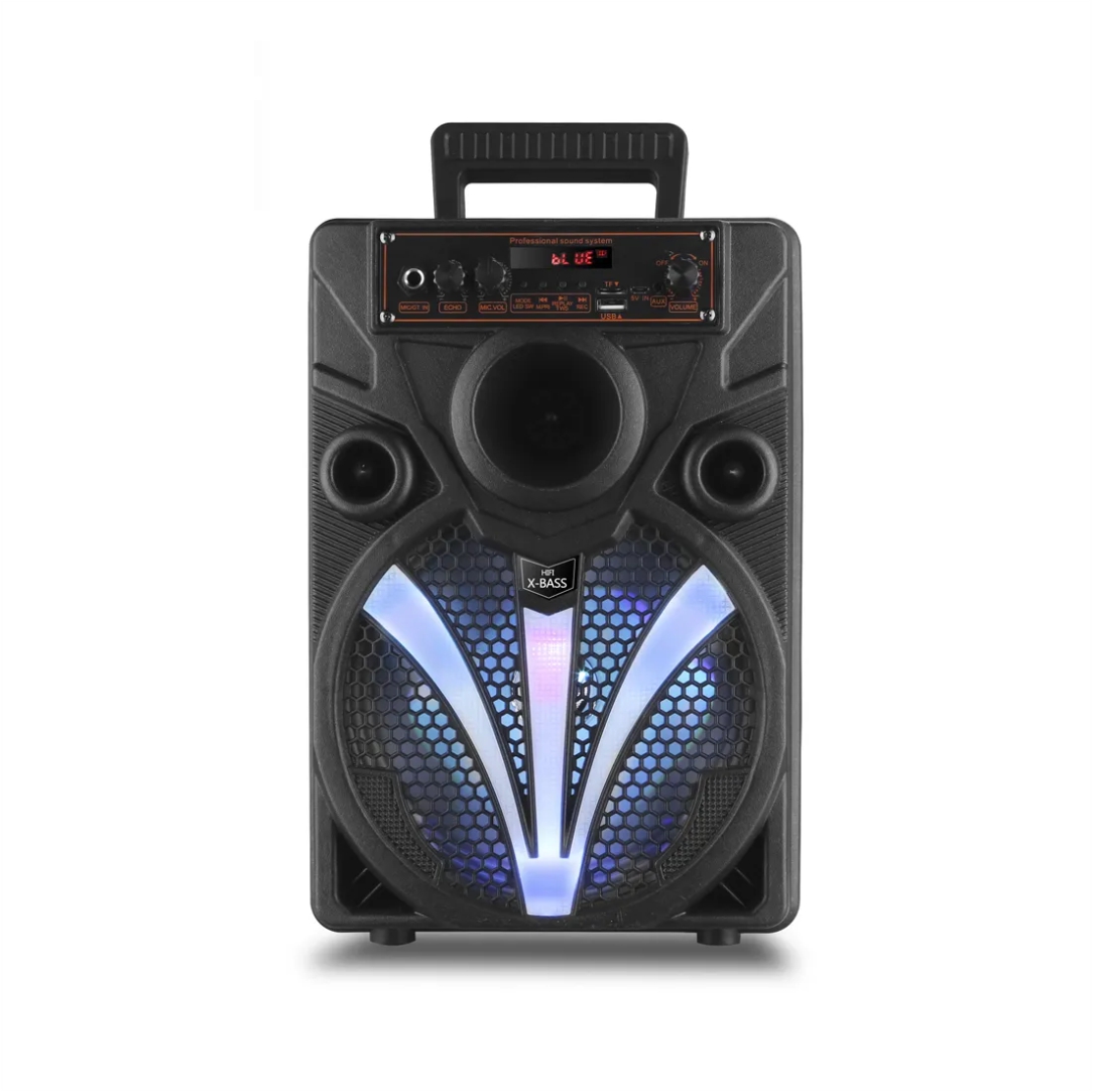 Ασύρματο φορητό ηχείο bluetooth με Led. Woffer 8". Mπορεί να αναπαράγει οποιοδήποτε μουσικό κομμάτι. Διαθέτει θύρα USB, AUX, FM και υποδοχή TF κάρτας. Διαστάσεις συσκευασίας 230x210x345mm. Βάρος περίπου 2 κιλά. Μπαταρία λιθίου 1800mAh. Χρόνος φόρτισης 3 με 4 ώρες περίπου. Χρόνος λειτουργίας 2 με 3 ώρες περίπου. Περιλαμβάνει μικρόφωνο και χειριστήριο.