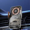 Βάση στήριξης κινητού αυτοκινήτου με ασύρματη φόρτιση. Διαθέτει καλώδιο USB. Η τοποθέτηση γίνεται στο αεραγωγό. Διαθέτει ελαστική επένδυση σε σημεία της βάσης και ελάσματα για καλύτερη στήριξη χωρίς κραδασμούς και φθορές στους αεραγωγούς. Ισχύς 15W.