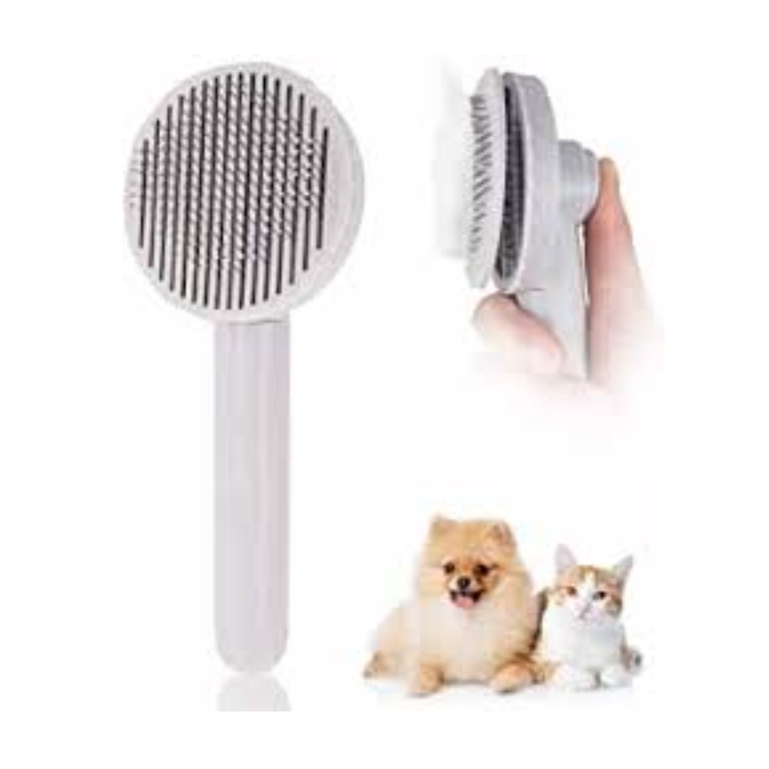 Βούρτσα καθαρισμού τριχώματος. Ιδανικό για το κατοικίδιο σας. Είναι αυτοκαθαριζόμενη, διαθέτει κουμπί για την αφαίρεση των τριχιών. Εργονομική και αντιολισθητική λαβή. Χοντρές ακίδες από ανοξείδωτο ατσάλι. Κατάλληλη για όλες τις ράτσες σκύλου και γάτας. Διαστάσεις 20x8cm.