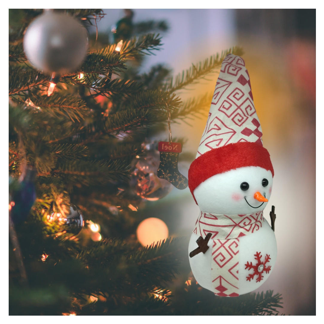 Διακοσμητικός Χριστουγεννιάτικος χιονάνθρωπος. Ιδανικός για να στολίστε τον χώρο σας και να του δώσετε μια γιορτινή ατμόσφαιρα. Διαθέτει πιαστράκι για να μπορεί να κρεμαστεί. Διαστάσεις 30x10cm.