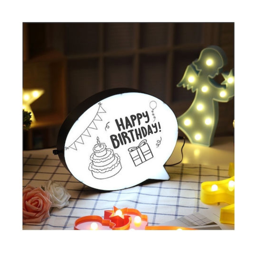 Διακοσμητικός πίνακας φωτισμού για να γράφετε τα δικά σας μηνύματα. Διαθέτει 3 διαφορετικά χρώματα μπλε, μαύρο και κόκκινο. Διαθέτει ενσωματωμένα LED φωτιστικά στοιχεία.