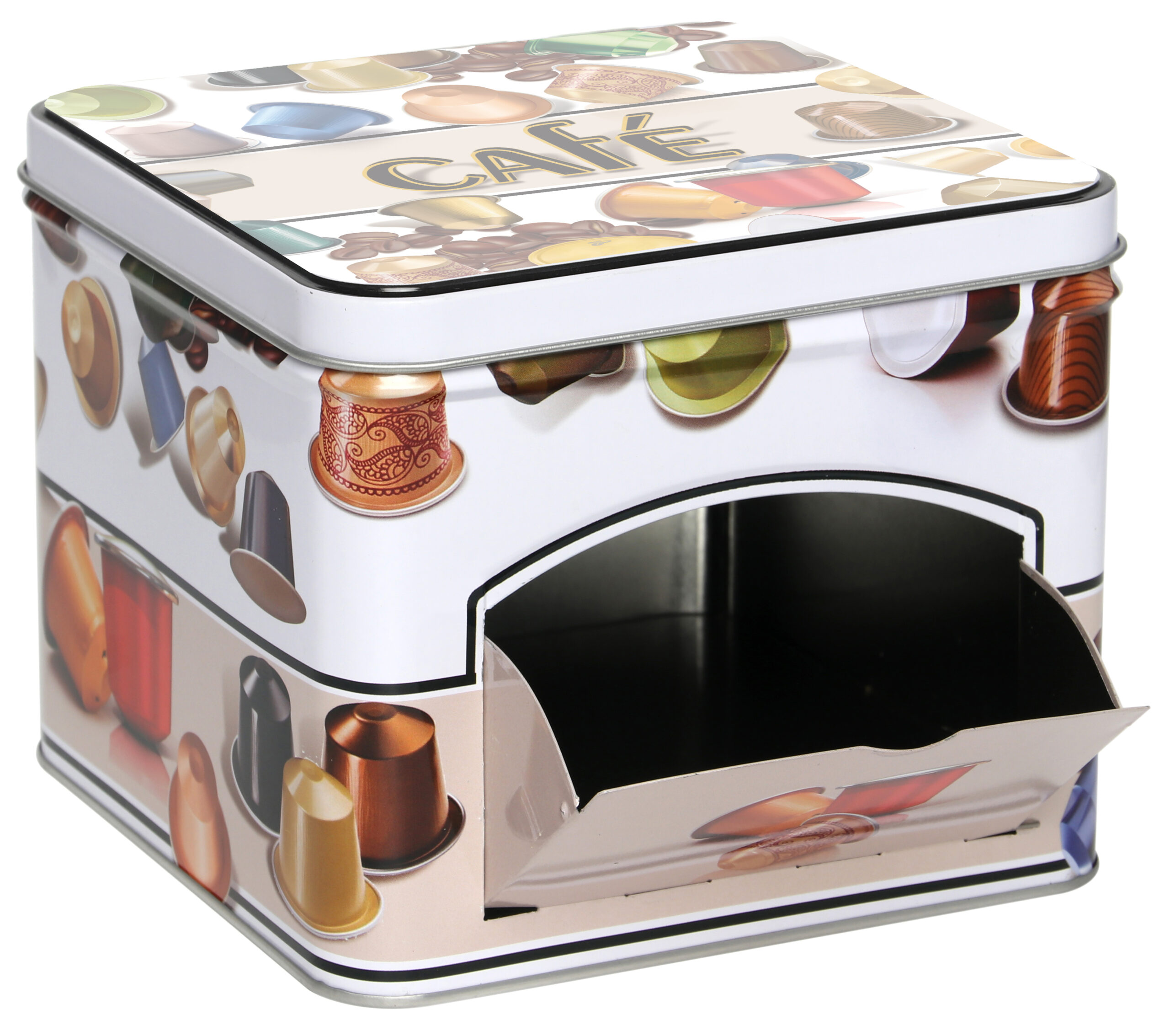 ΔΟΧΕΙΟ ΜΕΤΑΛΛΙΚΟ ΤΕΤΡΑΓΩΝΟ ΜΕ ΑΝΟΙΓΜΑ ΓΙΑ ΚΑΨΟΥΛΕΣ ΚΑΦΕ 15x15x12cm Νο41887