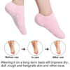 Κάλτσες με ειδική επίστρωση τζελ εμποτισμένο με ενυδατικά συστατικά για να κάνετε σπα ποδιών στο σπίτι. Φορέστε τις 20-30 λεπτά κάθε φορά για 2 με 4 φορές την εβδομάδα, αναλόγως με το πόσο αφυδατωμένα είναι τα πέλματά σας. Το τζελ περιέχει από μόνο του ενυδατικά έλαια που απελευθερώνται σταδιακά για να σας χαρίσουν βελούδινες πατούσες, αλλά για καλύτερα και πιο γρήγορα αποτελέσματα απλώστε πρώτα μια λιπαρή κρέμα στα πόδια σας. Σε αντίθεση με τις βαμβακερές κάλτσες που χρησιμοποιούμε συνήθως, δεν θα απορροφήσουν τις κρέμες αλλά θα φυλακίσουν την υγρασία.